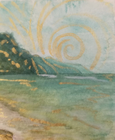 WATERCOLOR AND ACRYLIC ON PAPER.